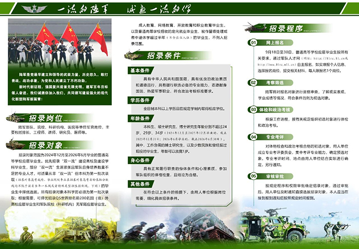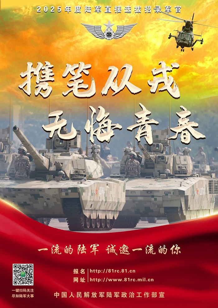 2025年第二批次陆军直接选拔招录军官工作最终解释权归陆军政治工作部。
