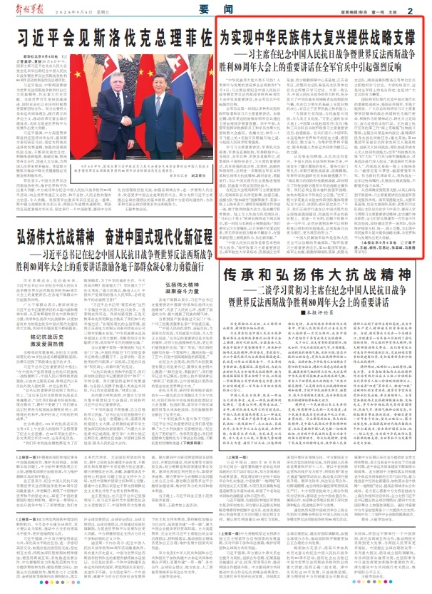 ——习主席在纪念中国人民抗日战争暨世界反法西斯战争胜利80周年大会上的重要讲话在全军官兵中引起强烈反响
