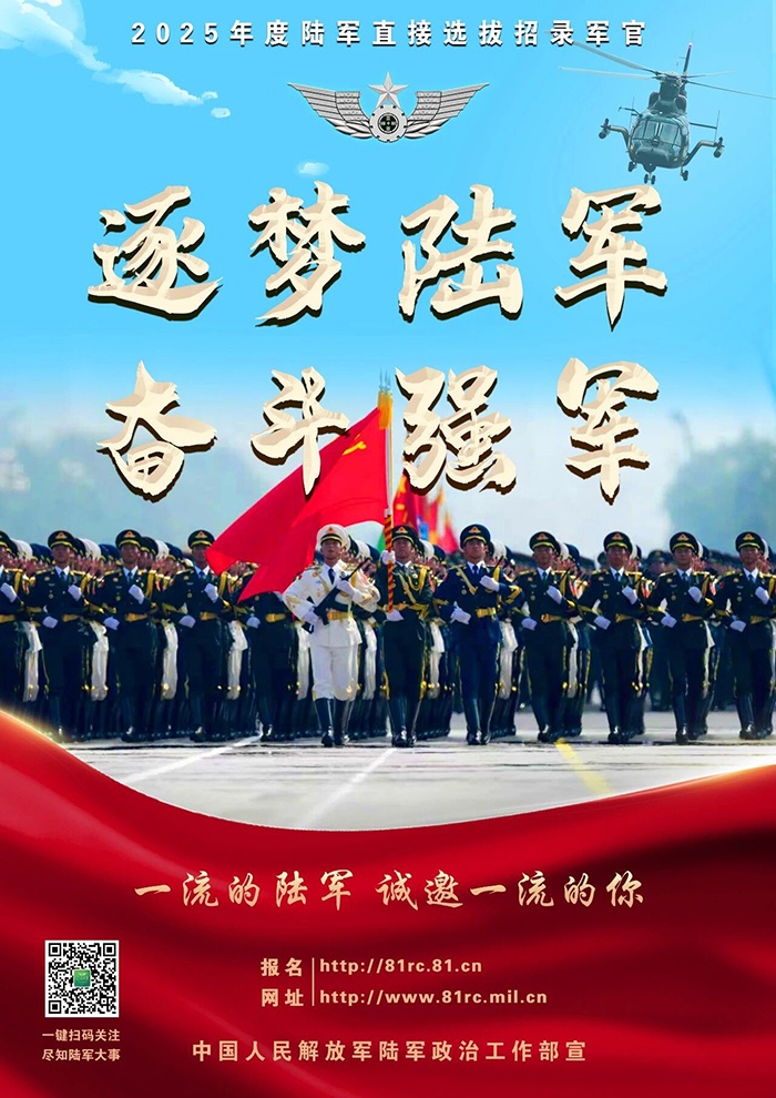 2025年第二批次陆军直接选拔招录军官工作最终解释权归陆军政治工作部。